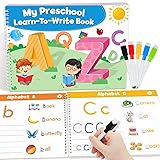 Preschool Learning Activities Educational Workbook, Learn to Write Alphabet Practice Book, Tracing Letter Number Colors Shapes Autism Learning Materials, Great for Kindergarten Preschool Classroom.