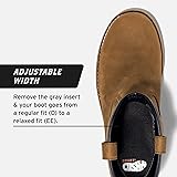 WORK BOOT - The 9” Bolduc Comp Toe is fully waterproof with a non-metallic composite safety toe. Made with barnyard-resistant leather sourced from US steer, it delivers next-level comfort and performance without any break-in period needed. PERFORMANCE - The lightweight, non-metallic composite safety toe offers a great fit, does not conduct heat/cold & is 15% lighter than steel. The BRUNT rubber outsole is slip, oil, and high-heat resistant up to 572°F for enhanced performance. COMFORT - BRUNT Triple Layer Cushion insoles includes a nonstick top layer, a memory foam midlayer, a cushy bottom layer, and an anti-odor treatment. The midsole provides superior cushioning, while the nylon shank offers additional midfoot support. WATERPROOF - BRUNT'S waterproofing system features waterproof leather, waterproof seam sealing behind all reinforced double and triple stitched stress points, and a breathable waterproof membrane. ADJUSTABLE - With the Adjustable Width System, remove the gray insert to change the boot from a regular fit (D) to a relaxed fit (EE). SAFETY - Meets ASTM F2413-18 M I/75 C/75 EH standards, ASTM F2913-19 SATRA non-slip testing standards, and ASTM F1677-96 Mark II non-slip testing standards. Outsole & midsole meet ASTM D47-06 903 oil and isooctane chemical-resistant standards.