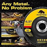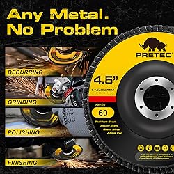 ✨【Premium Material】PRETEC flap sanding discs are crafted from high-density premium zirconia abrasive, ensuring strength, durability, and extended disc life. They are designed to withstand high temperatures and pressure for optimal performance. 💡【Great Performance】Meeting industrial standards, our high-quality 4.5" x 7/8'' flap discs are recommended for use with 4.5” angle grinders. These Type 27 flap discs offer versatility, suitable for aggressive stock removal and surface blending. 💎【Fast & Efficient Grinding】The resin fiber construction, combined with the fiberglass backing plate, absorbs vibrations without smearing. The fiberglass pad enhances stability and efficiency during grinding. 💫【Angled T27】Featuring beveled Type 27 discs, our product facilitates edge and corner grinding, making it ideal for surface sanding and working on welded seams at angles ranging from 5 to 15°. ✅【Versatile Usage】The 60-grit flap disc, with its coarse build, is ideal for heavy cutting and blending. It serves as the perfect flap disc for stock removal, beveling, and weld blending on both contoured and flat surfaces.