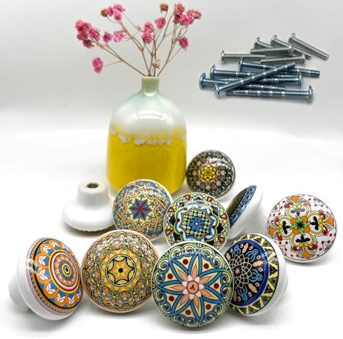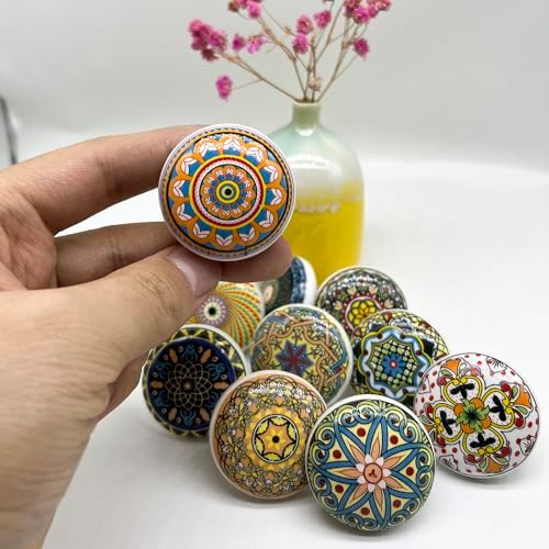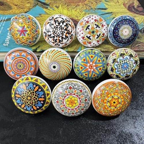 Bohemian Ceramic Knobs - 10Pcs Round Porcelain Knobs - Exquisite Ceramic Bohemian Handles - Bohemian Style Cabinet Knobs