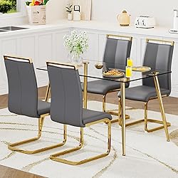 - Glass Dining Table Set for 4,5 Piece Dining Table and Chairs Set,Modern Kitchen Dining Room Table with 4 PU Leather Dining Chairs,Dinner Table Set