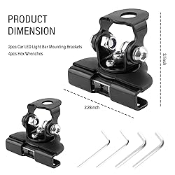 - THIS MOUNTING BRACKETS PROVIDE THE MOST STABLE SUPPORT FOR YOUR LED LIGHTS! ➯ Product Information:★ Size:Mounting Bracket: 2.28*2.10*1.46 inch★ Hex Wrench: 2.00*0.72*0.10 inch/1.85*0.69*0.16 inch★ Material: Stainless Steel★ Color: Black / Silver★ Packaging: 2* Car LED Light Bar Mounting Brackets, 4* Hex Wrenches ➯ Product Features:★ Multi-angle adjustment, can be adjusted horizontally and vertically.★ Rubber base, effective shock absorption and reduce wear and tear.★ Made of stainless steel, sturdy and durable for long term use.★ Non-destructive installation, just use hex wrench to fix it.★ Can be mounted on car grill or hood, can install work lights, fog lights and other LED lights.