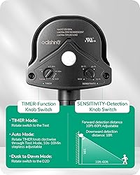[Auto Mode & 60FT Detection Range] Built-in PIR motion detector for sensitive detection, Motion Detected - ON, No Motion - OFF after 1-10mins (adjustable as you need); with an upgraded 2-way sensor, it covers up to 60FT ahead with a 240° sensing angle and 18FT below with a 360° sensing angle, guarding outdoor without manual switches [Reliable Dusk to Dawn Mode] With innovative photocell sensors, our outdoor motion sensor auto turns ON at dusk and OFF at dawn; no more worries about manual switching—freeing up your hands and saving both energy and money; OFF-ON: 50-250 LUX, ON-OFF: Max. 800 LUX ( NOTE: Motion Detected & Delay Time Functions Not Available in Dusk to Dawn Mode) [Convenient Manual Override Mode] Simply toggle the wall switch OFF - ON within 3 seconds to activate the light for 8 hours, automatically switching OFF at dawn; our motion sensor for outdoor lights provides a practical solution for maintaining consistent illumination, no need to adjust switches frequently or worry about forgetting to turn off lights [Worry-free Installation] EDISHINE replacement motion sensor outdoor comes with 3 distinctively colored wiring nuts for effortless wiring clarity, UL listed, ensuring a hassle-free and safe setup whether it's your first installation or a replacement; a cost-effective alternative to motion floodlight sensors, providing excellent lighting experiences while reducing costs [Universal Used Indoor/Outdoor] Operating at 120V AC 60HZ, our dusk to dawn motion sensor is compatible with various indoor and outdoor lighting fixtures, such as garages, patios, driveways, porches, and pool areas, bringing bright and comfortable lighting to your living space (Note: Max. compatibility with LED bulbs is 72W, and with incandescent bulbs is 300W)
