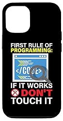 First Rule Of Programming: If It Works, Don't Touch It. Computer screen and do not touch mouse icon. Computer Programming Design perfect for software developers computer engineers, web designers. If your work is in debugging, coding, developing apps, this design is rightly for you, just beware of the fixing bugs and hacker. Two-part protective case made from a premium scratch-resistant polycarbonate shell and shock absorbent TPU liner protects against drops Printed in the USA Easy installation