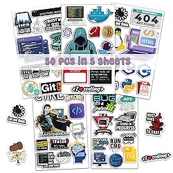 BIGZORO 50 PCS Programming Developer Stickers Coding Vinyl Decals Waterproof Patches Laptop Scrapbook Window Suitcase Gifts For Coders Programmers Hackers Geeks Engineers