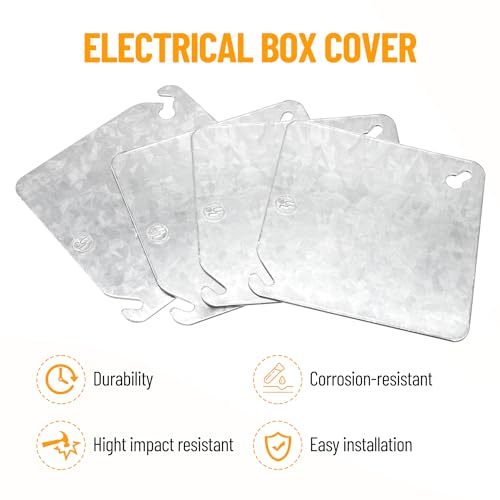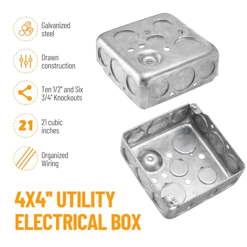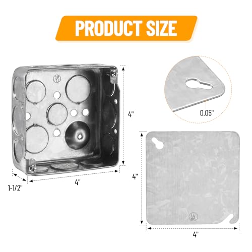4" Square Electrical Box with Cover, 1-1/2" Deep Metal Electrical Box, Ten 1/2'' and Six 3/4'' Knockouts, Galvanized Steel, 21.0 Cu. in. Capacity Junction Box Metal