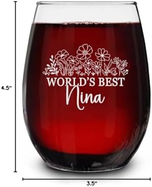 World's Best Nina Wine Glass - Gifts For Nina From Grandkids - Birthday Gifts For Nina - Mother's Day Gifts - Nina Wildflowers Wine Glass - Best Nina Floral Wine Glass