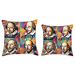 100% Polyester Classic Literature design. Immerse yourself in the intersection of timeless elegance and contemporary flair with our exclusive reinterpretation of William Shakespeare's iconic image. Infuses the playwright's visage with a burst of vibrant colors and dynamic graphic patterns. 100% spun-polyester fabric Double-sided print Filled with 100% polyester and sewn closed Individually cut and sewn by hand Spot clean/dry clean only