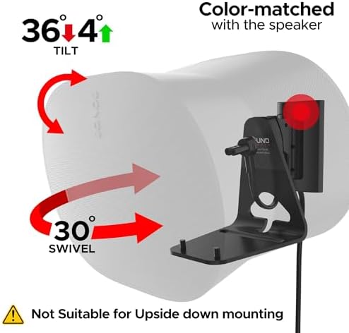 • TILT AND SWIVEL FOR CUSTOMIZED AUDIO: Experience complete control over your listening experience with our mount's wide swivel range of 30° left/right (wall to wall) and tilt of 36° down/4 up. Easy, tool-free adjustments allow for personalized audio positioning, ensuring the best sound quality in any room setup.