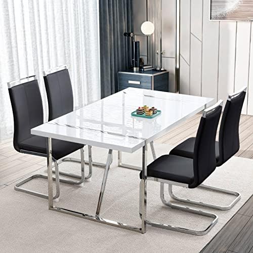 - Modern and stylish match:55 inch white dining table and faux leather dining chairs are a combination of simplicity and style with fresh colors, a perfect match for your dining room and kitchen. This dining table and chairs set for 4 people will enhance the dining comfort for you and your family