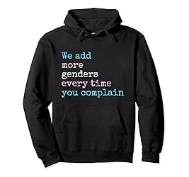 This non-binary pride quote design is the perfect gear for any trans, agender, genderqueer, gender-fluid, nonbinary, gender creative or bigender person, parent, grandparent, sibling, friend or ally: "We add more genders every time you complain." Fun choice for your next LGBTQ pride parade or trans pride event. 8.5 oz, Classic fit, Twill-taped neck