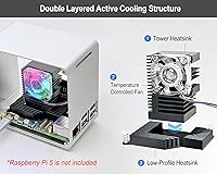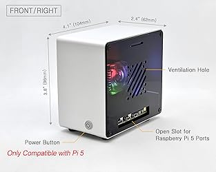 Premium Aluminum Build: The high-quality aluminum case features a mini PC-style design that not only provides durability, but also adds a sleek, modern touch to your desk, wall, or workshop. (*Note: Not compatible with Raspberry Pi 4 due to different USB and Ethernet port placement.) Large Active Cooler with Style: Combines a large heat dissipation structure with an RGB-lit PWM fan that turns on with system power in style and automatically adjusts its speed based on CPU temperature. (*Note: The lighting is not programmable, and the fan may not spin when the CPU is cool, or may run continuously if no OS or bootable drive is available to control it.) **Compatible M.2 HAT NVMe SSD Shield: Refer to B0DLW4DNXB (ECR5_SSDS) in the US, B0DQW14GWW in the UK/EU/AU, and B0DQXQ7NWL in Japan to expand SSD storage and achieve ultra-fast performance. (M.2 HAT NVMe shield sold separately.) Easy Access & Soft-Touch Power Button: GPIO pins, SD card slot, USB, Ethernet, Power, and Micro HDMI ports remain fully accessible, while the soft-click power button feels smooth and responsive.