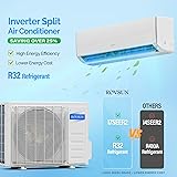【All-Season Integrated Mini Split】: Our mini split air conditioner and heating system is an all-season solution, featuring air conditioning, robust heat pump, dehumidifie and fan function. It includes automatic defrosting, self-diagnosis, 24-hour timer, wind swing, sleep mode, ECO mode, and more 【Energy-Saving Cooling & Heating】: This split air conditioner is equipped with high-power compressor, heat pump & innovative inverter technology. Its 17 SEER2 grade ensures optimal performance in every season with 25% energy-savings rather than others' 14 SEER2 ac unit. It is also ETL and AHRI certified, guaranteeing the reliability of electricity bill savings (functioning in temperatures 5°F-122°F) 【WIFI-Enabled & Voice Control】: Apart from the remote control, it can seamlessly integrate with a mobile APP or voice control (compatible with Alexa/Google Assistant). Set routines for optimal temperature changes, allowing you to adjust your mini split air conditioner from anywhere so you can enjoy endless comfort as soon as you arrive home 【Ultra-Quiet Operation】: This air conditioner operates ultra-silently at only 29 dBa at low speed. The smart 24-hour timer and low-noise operation ensure a sweet night of sleep. More importantly, the display screen on the indoor unit can be turned off when not needed, so it won't disturb your sleep 【100% Satisfaction】: We are confident to stand behind our product and would like to guarantee you a best shopping experience upright position for 24 hours. Extra professional installation is required. Perfect for Home, Storage, Office, Business or Light Commercial Use. We are confident to stand behind our product and would like to guarantee you a best shopping experience