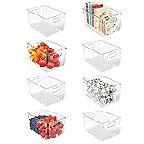 Lifemaster Multi-purpose Refrigerator Bins - 8 pieces Large Capacity Stackable Fridge Bin Organizer with Easy Grip Handles - Clear