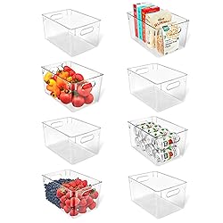 - Introducing the LifeMaster Pack of 8 Large Fridge Organizer PET Clear Bins, the perfect solution for optimizing storage space in your kitchen. These versatile bins are designed to help you efficiently organize your fridge, kitchen cabinets, pantry, and countertops, keeping your essentials easily accessible and neatly arranged. Crafted with a focus on durability and functionality, these bins feature a large capacity design, allowing you to store a variety of items while maximizing available space. Whether it's fruits, vegetables, condiments, or snacks, these bins can accommodate them all, helping you keep your kitchen clutter-free and well-organized. Cleaning is a breeze with these PET clear bins, thanks to their easy-to-clean design. Simply wipe them down with a damp cloth or wash them with soap and water to maintain their pristine appearance. This ensures hassle-free maintenance and keeps your storage areas hygienic and tidy. The convenient handle design makes accessing your stored items effortless. With ergonomic handles, these bins are easy to pull out, allowing you to retrieve items quickly without any hassle. This makes them ideal for busy kitchens where convenience is key.