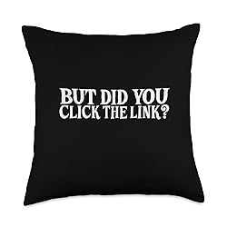 100% Polyester Don't Click on That. But Did You Click the Link? 100% spun-polyester fabric Double-sided print Filled with 100% polyester and sewn closed Individually cut and sewn by hand Spot clean/dry clean only