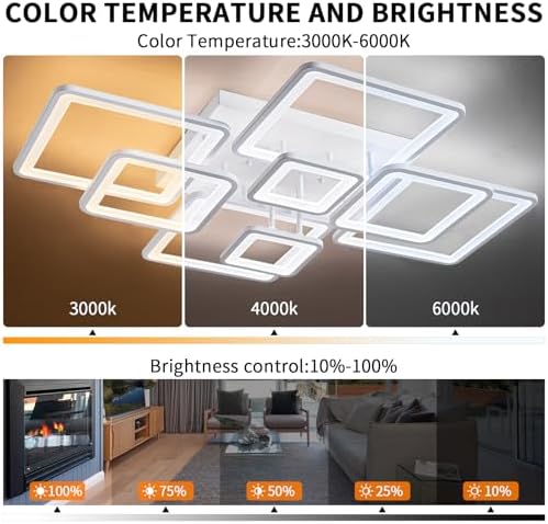 - 📐Large Flush Mount Ceiling Light:39.37''x31.5''semi flush mount ceiling light provides 100W, 8000lm LED lighting, 110V,5.5'' from ceiling makes it suitable for low ceilings