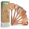 • ESSENTIAL 7-PIECE FUNCTIONAL SET: Includes a wooden spatula, wood spatula, slotted turner, curved wok turner, slotted spoon, pasta server, salad spoon, and fork—making this wood utensils set for cooking ideal for stirring, flipping, and serving every meal.