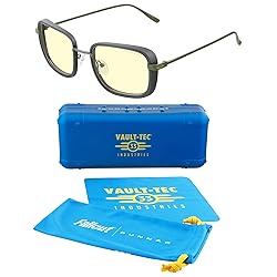 OFFICIAL FALLOUT MERCHANDISE: From the Amazon Original Series Fallout. Includes exclusive vault 33 gasses, metal collectors case, microfiber cloth and pouch FALLOUT VAULT 33: Retro-futuristic square style stainless steel and nylon GUNNAR PATENTED LENS TECHNOLOGY: With G-Shield Plus lens coating, anti-reflective and smudge resistant BLUE LIGHT BLOCKING GLASSES: Blocks harmful blue light and 100% UV Officially licensed Amazon Studios Fallout Glasses