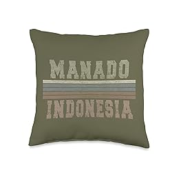 100% Polyester Perfect retro 70s vintage Indonesians gifts for anyone born in Manado Indonesia. Proud to be born in Manado, Indonesia. Cute Indonesian vacation decor, great for locals or tourest visiting the Indonesia. 100% spun-polyester fabric Double-sided print Filled with 100% polyester and sewn closed Individually cut and sewn by hand Spot clean/dry clean only