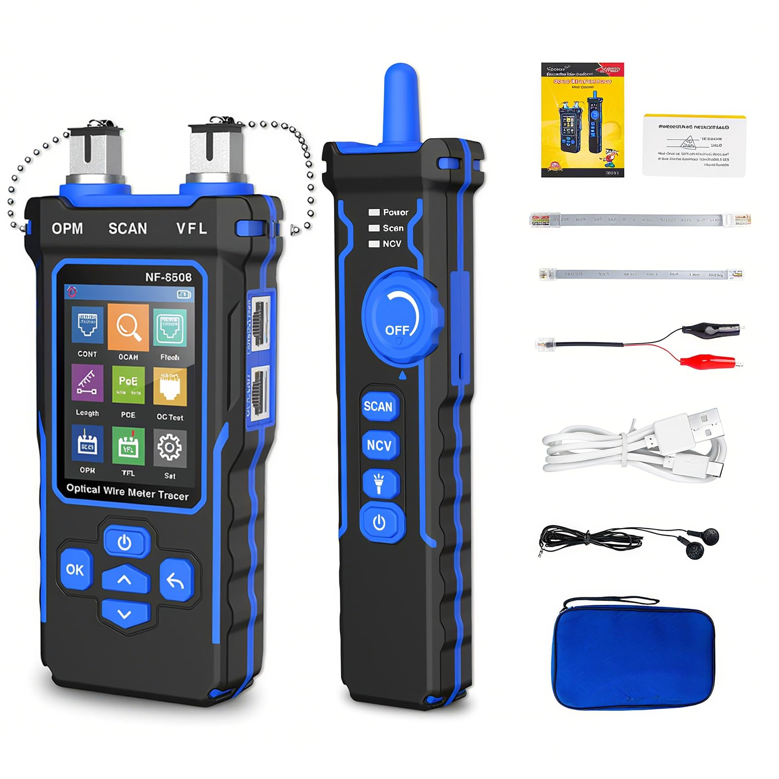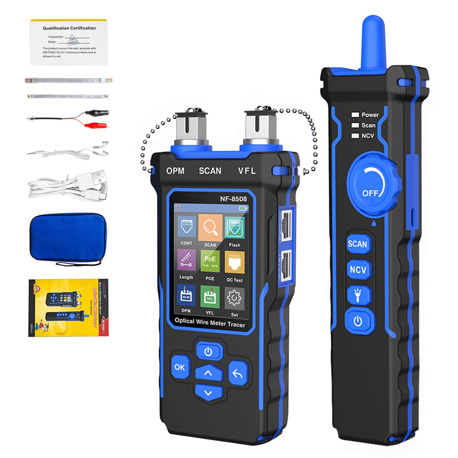 NF-8508 Network Cable Tester with Optical Power Meter POE/NCV/RJ11 RJ45/CAT5 CAT6 Cable Toner Ethernet Tester,Length Measurement,Fiber Find Fault Test Phone Line Tracer