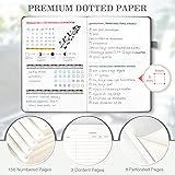 【3 Pack Bullet Dotted Journal】This leather notebook bulk includes 3 notebooks and 2 stencils, offering great value for money. Each notebook dotted contains 80 sheets (160 pages) , totaling 240 sheets(480 pages) across the set. The sturdy binding design guarantees the pages remain secure and will not easily come loose. Sized at a large A5 size(5.7"x 8.3"), these dotted journals offer a balance between portability and ample space for notes. 【120 GSM Thick Paper & Numbered Pages】These writing journals stand out for their 120gsm thick paper, compatible with a variety of pens, ensuring a smooth writing experience without any ink bleed-through. Each A5 journal includes 3 index pages and 156 numbered pages for easy organization, along with 8 perforated pages for convenient tear-outs or quick notes. 【Hardcover Faux Leather Cover】Crafted with a luxurious faux leather cover, these dot grid journals are not only animal-friendly but also provide a pleasant tactile experience. The hardcover of notebook pack ensures your entries are well-protected, making these journals treasured keepsakes. Designed to lay flat at 180°, they facilitate effortless writing. 【Thoughtful Accessories】Complete with practical accessories, each bullet dotted journal book includes 2 pockets, 2 bookmark ribbons, 1 elastic band, and 1 pen loop. Additionally, each set comes with 2 free dot grid journal stencils featuring various graphics, letters, and numbers, enhancing creative possibilities for planning, documenting work, or artistic endeavors. 【Wide Application】The dotted journal notebook is versatile and ideal for a wide range of users.Whether you're a student, teacher, designer, or engineer, this A5 dotted journal is your perfect companion for drawing, handwriting notes, planning, or recording. Individual packaging also makes a wonderful gift to share with friends, family, and classmates.