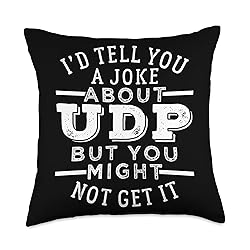 100% Polyester I'd tell you a joke about UDP but you might not get it Funny Computer Hacker Cybersecurity Design Idea perfect for any computer scientist who loves working as a sysadmin and knows about the importance of infosec. 100% spun-polyester fabric Double-sided print Filled with 100% polyester and sewn closed Individually cut and sewn by hand Spot clean/dry clean only