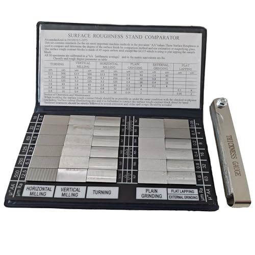 - 【what you will get】1 set 30 Specimens Surface Roughness Comparator Composite Pocket Set Gauge, Ra0.05-12.5mm Microfinish Comparator,and 1 handful Feeler Gauge Set Stainless Steel Thickness Gauge 32 Blades 0.04-0.88 mm (0.0015-0.035 Inch)Helping you with your surface roughness measurement, quality control and instrument calibrationand teaching projects