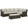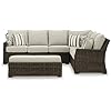 Signature Design by Ashley Brook Ranch Casual Nuvella Weather Resistant Fabric Right Hand Facing Outdoor Sofa Sectional/Bench with Cushion and 6 Throw Pillows, Set of 3, Beige & Dark Brown