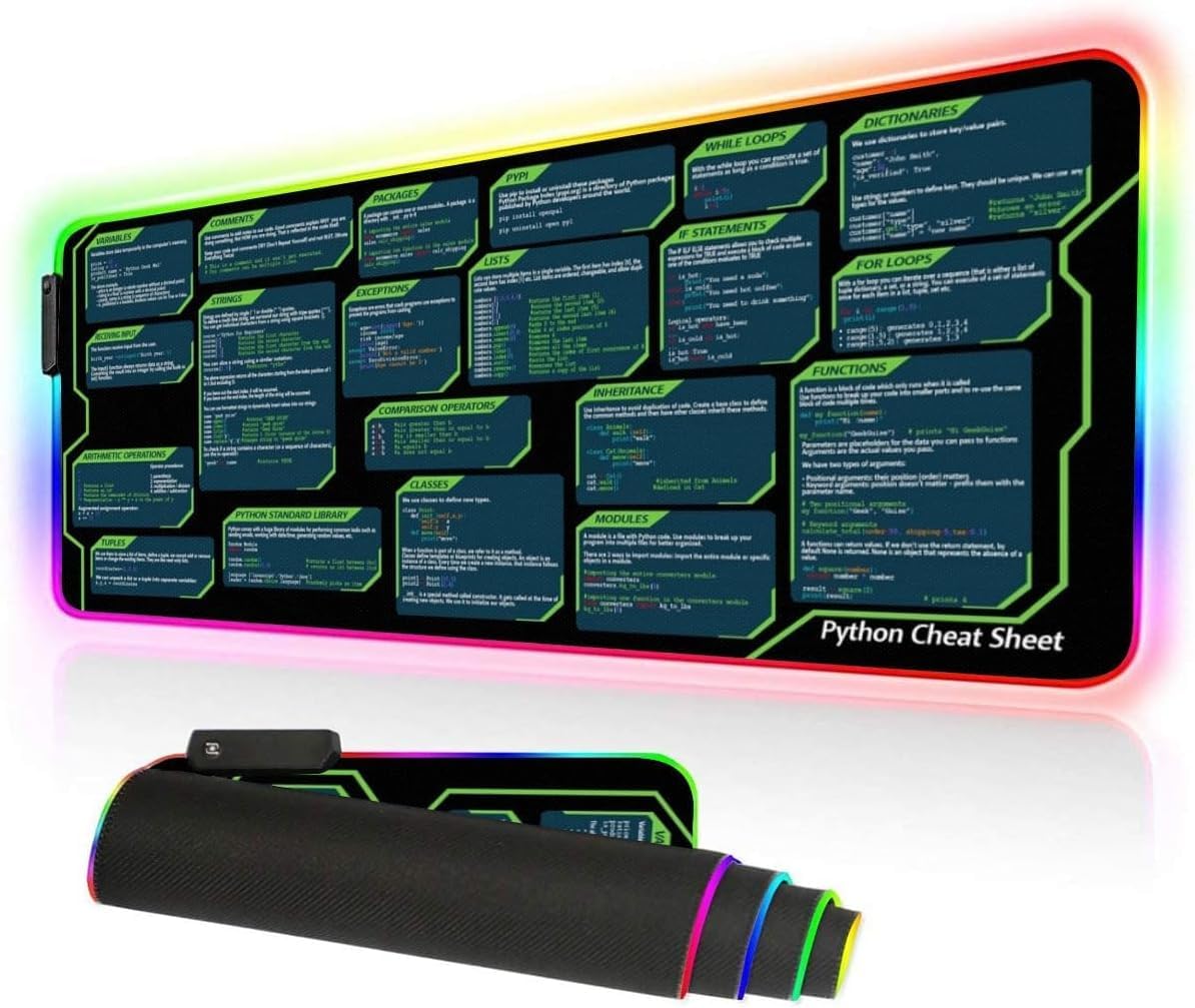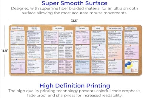 Python Programming Cheat Sheet Desk Mat - Large Mouse Pad with Complete Code Reference (31.5" x 11.8") - Professional Coding Guide Mousepad for Beginners & Software Engineers