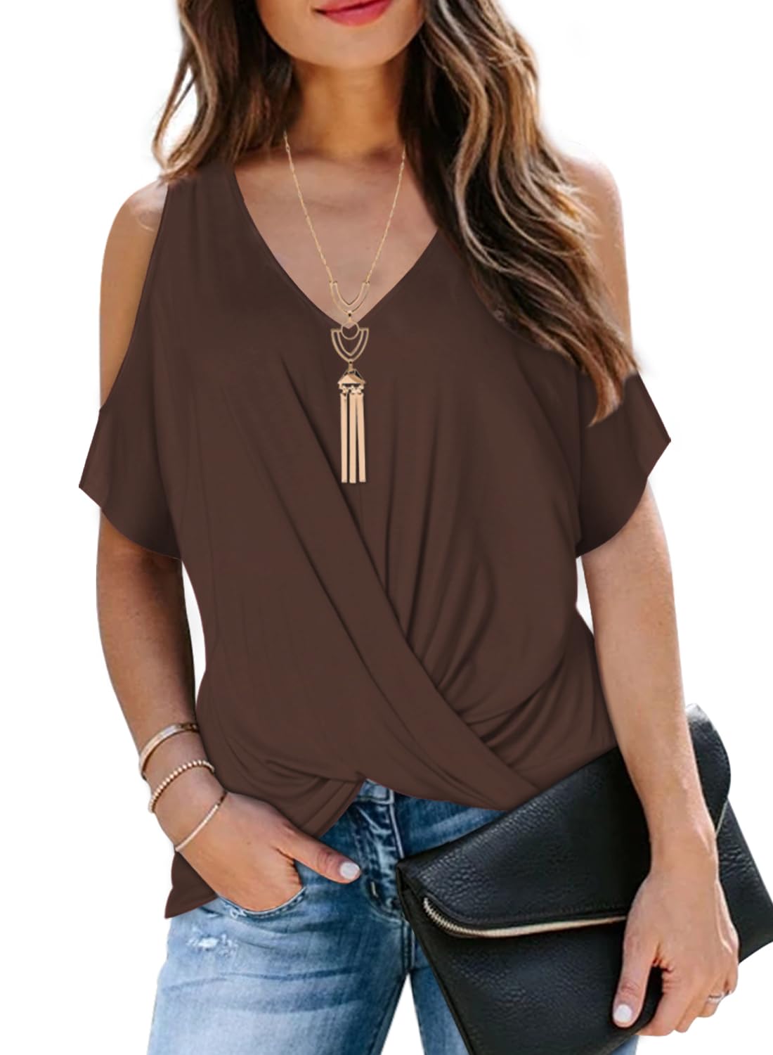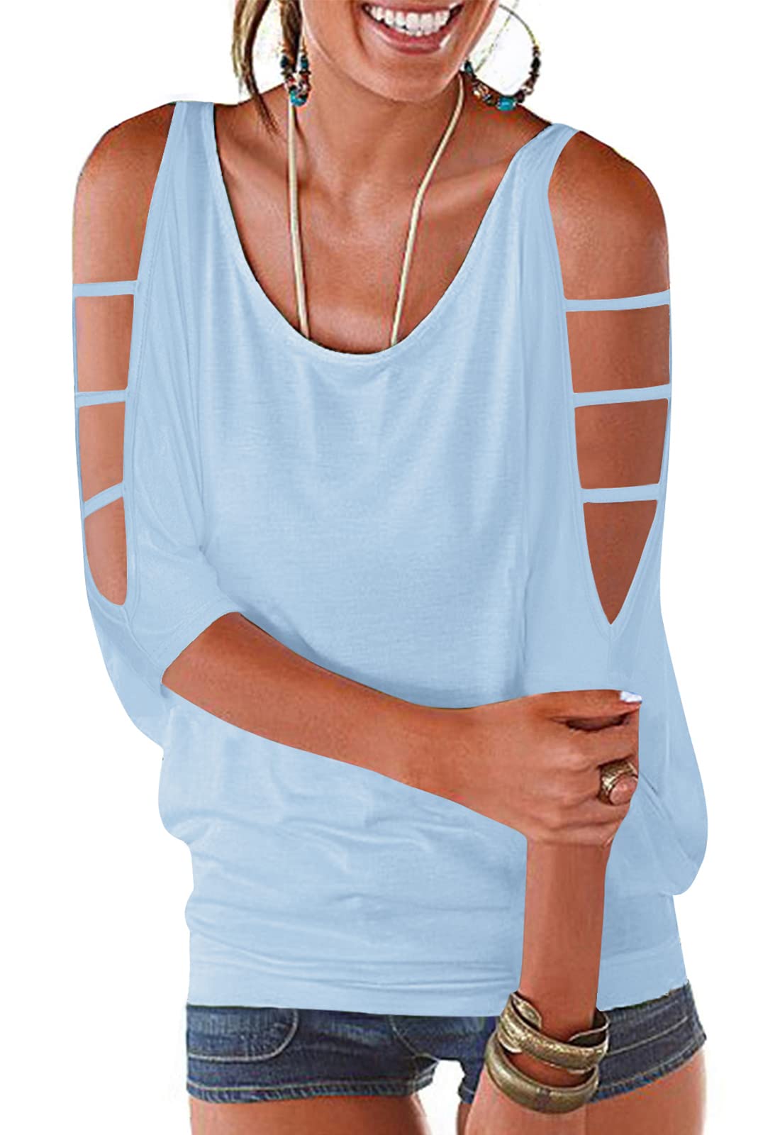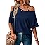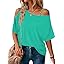 LEIYEE Womens Summer Black Cold Off Shoulder Tops 2025 Sexy Casual Cute Short Sleeve Loose Fit T Shirts Blouse