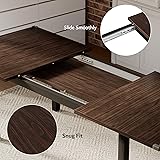 Package Note: The table and chairs will be delivered in 2 packages, they may not arrive at the same time, so please wait patiently( Box1: Tablex1, Box 2: Chairs x 6) Perfect for 4-6 Persons: This classic and chic dining table and chair set is perfect for family and friend gatherings,the extendable design just 1 person can quickly extend the table to a maximum of 63''(5¼ft) for a meal of 6, no need to worry about crowded seats, enjoy a homey and happy meal Modern Dining Table and Chairs Set: This dining table set contains 1 table and 6 chairs. Table size: 47.3"L x 31.5"W x 30"H (Shrink); 63"L x 31.5"W x 30"H(Expanded); Chair Size: 34.2"H x15.7"W x 18"L. It has a wide range of uses, which can be used for home, kitchen, living room and dining room, etc Thickened Durable Structure: This kitchen table and chair set is made of MDF board with a reinforced metal structure, ensuring robust stability, which provides strong weight-bearing capacity(Table: 330lbs; Chair: 330lbs). With anti-slip foot pads, don't scratches on your floors when you move it Thoughtful Design: With corner protection in this dining table, and an arc design in the dining chair, protect your family from sharp collisions. Besides, the middle backrest is in sync with the natural curvature of the spine, so it is ergonomically designed to bring you a cozy backrest experience Space-Saving for Small Space: Equipped with the track this dining room table can be shrunk fit tightly when not in use. Dining chairs can be moved under the dining table, utilize space well and say goodbye to clutter
