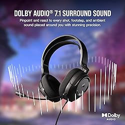Dolby Audio 7.1 Surround Sound: Connect with the included USB adapter on PC and Mac and immerse yourself in all-around sound that pinpoints every footstep and audio cue accurately.. Multiplatform Connectivity: A universal 3.5mm connection is compatible with PC, Mac, consoles, mobile, and more, for an audio advantage in all your games. Custom-Tuned 50mm Audio Drivers: Hear the entire range of your in-game audio with custom-tuned wide-frequency audio drivers. Stress-Free Sound for Hours: A floating headband design provides cloud-like comfort, aided by cushioned soft fabric ear pads. Listen and play for hours at a time. High-Quality Omni-Directional Microphone: Capture your calls and commands with stunning clarity with a flexible omni-directional microphone.