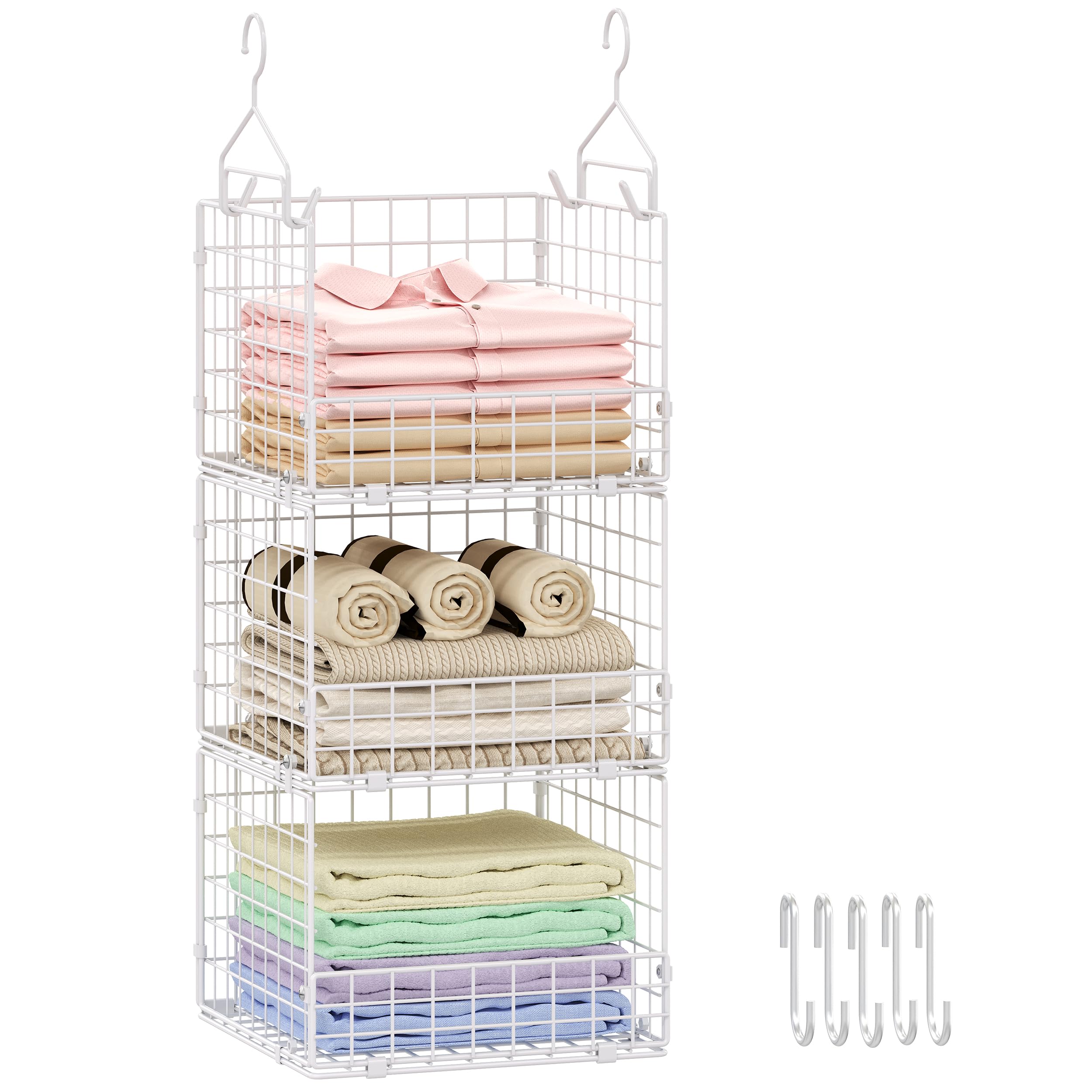 - 【Stackable Design】: The stackable design of the bag storage basket allows for vertical storage, maximizing space efficiency. It is particularly suitable for areas like closets, storage rooms, or small-sized rooms. Through stacking, the wardrobe storage space appears more organized and comfortable.