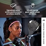 Stay Cool & Dry: These versatile workout and lifting gloves feature ventilated palms that allow for superior airflow, provide effective moisture control, and help keep your hands cool and dry during intense training sessions Comfort Meets Performance: These soft fabric-lined men's and women's workout gloves feature extended finger saves, ergonomically padded suedette palms that help protect against calluses and blisters, and ventilated sections for enhanced breathability Workout-Ready Features: Must-have workout accessories, these gym gloves feature soft toweling material on the thumbs, so you're able to quickly wipe away sweat between sets and stay focused on your performance Effortless On & Off Action: Quickly transition from warm-ups to workouts; Our men's and women's weightlifting gloves are easy to put on and take off thanks to a simple hook-and-loop fastening, convenient wrist tab, and dual finger pulls Made For All: Designed to work for a variety of athletes and fitness enthusiasts, these work out gloves are available in multiple sizes and boast special features like elasticated side finger panelling for more comfortable wear and better workouts