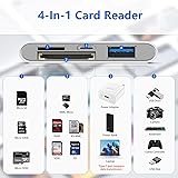 Multiport SD Card Reader: This card reader has three connection interfaces: Type-C, Lightning and USB, adaptable to a variety of devices. Whether you are using a new computer with a Type-C interface, an iPhone/mac/ipad with a Lightning interface, or a device with a traditional USB interface, this memory card to iphone adapter can meet your needs, conveniently and quickly Fast Data Transfer: This 4 in 1 universal card reader has a newly upgraded Type-C port to support data transfer. You can also quickly transfer photos or videos to your iPhone/iPad/PC via SD/TF memory card, experiencing 60MB to 90MB per second transfer speed, Compatible with SD, SDHC, SDXC, Micro SD, TF card, micro SDHC, micro SDXC memory card, etc Peripheral Expansion Functions: In addition to reading data on the card, thissd card reader for iphone also has a USB port that can connect peripherals such as USB flash drives, mice, keyboards, etc. You can conveniently use the card reader as a USB expansion interface to provide more connection options for your devices Compact and Portable Design: This digital camera transfer to phone adapter is plug-and-play, no driver required, and features a compact design that is easy to carry and use. Whether you use it on the go, in the office or at home, you can easily put it in your pocket or bag and use it anytime, anywhere, convenient and practical Warm Tips: iOS9.2-iOS12.4 only supports functions such as one-way import of photos and videos to Apple phones and use of USB keyboards, but does not support reading of office software such as word, excel, ppt, pdf, etc., and USB mouse operations. If it is iOS13 and above, it can support full-featured OTG