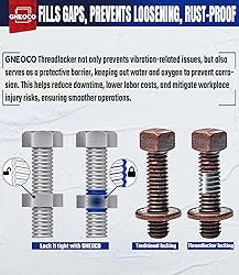 Prevents Rust and Corrosion: Protects from leaks, rusting, and corrosion and eliminates need to stock up on expensive lock nuts and washers Easy to Use: Simply apply the threadlocker evenly to the thread, tighten the nut, and cure initially for 20 minutes, then your Items can be used normally after fully cured in 24 hours Wide application : Whether you're installing a valve cover, water pump, or just tightening down some furniture screws, our adhesive solution can be used in various automotive, industrial, and furniture applications. Why The Bottle Is Not Full: Threadlocker will solidify in anaerobic conditions, so the bottle is half-full to ensure the threadlocker remains liquid, prevent solidification and hardening.