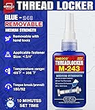ThreadLocker Blue, Thread Lock Medium Strength Lock Tight for Nuts, Bolts, Fasteners and Metals, Anaerobic Curing Metal Glue to Prevent Loosening and Corrosion (M243-50ml)