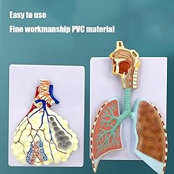 【Detail display】This model shows the respiratory tract, nasal cavity, oral cavity to the trachea, bronchi and the right bronchial tree entering the lung lobes. On the other side, an enlarged alveolar model is designed to display the histological microscopic structure of the alveoli. 【Lung Segment Model】It better explains the process of gas exchange. It is placed on the bottom plate and is made of food-grade PVC material with advanced manual coloring process. 【The workmanship is meticulous and strict】It is made in strict accordance with medical proportions fthe whole to the details. It is not only an excellent teaching aid for hospitals/teaching/doctor-patient communication, but also a great handicraft. 【Material】Made of environmentally friendly VC material, it has a long service life, is not easy to fade, is not easy to oxidize, and has bright colors. 【A variety of scope】It can be used not only as a learning tool for medical students, Teaching tool.It is also as a communication tool for doctors and patients.