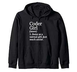Coder Girl Definition Funny Sarcastic Computer Programmer Zip Hoodie