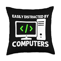 100% Polyester If you are a programmer, developer and coder, get this EASILY DISTRACTED BY COMPUTERS design for men, women, boys, girls, daddy, aunt, papa, mama, mommy, father, brother, uncle, him. Cool clothes apparel for programming, engineering and coding geeks. Funny clothing gift idea for nerd kids, toddler who are computer whisperer, tech gaming enthusiasts and computer science fans. Cute birthday, Christmas novelty present for coders, programmers, technician, software engineer along with computer themed stuff. 100% spun-polyester fabric Double-sided print Filled with 100% polyester and sewn closed Individually cut and sewn by hand Spot clean/dry clean only
