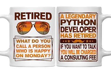 【Retired Gilfs For Python Developer】: Funny retirement gifts for Python Developer white ceramic mug 11oz is very suitable for men, dad, grandpa, father-in-law, uncle, stepfather, brothers, people or your good friends as their birthday, Father's Day and Christmas gift to pass on your best wishes. 【Great For Many Occasions】: Our funny coffee mug is printed with funny inspirational saying, it is a great gift idea to remind people do not forget how strong and brave they are. Best office gifts, team gifts for employees and coworkers, motivational gifts, encouragement gifts, caregiver gifts, congratulations gifts, cheer up gifts, mothers day or birthday gifts for women. 【High-quality Material】: Printed on both sides. Print type: Sublimation printing. This coffee mug inspirational gifts for women is made of food grade ceramic which can be used for many years. Safe and durable, easy to clean. Great gift idea for coffee or tea addicts. 【Ideal Capacity For Daily Use】: The You are amazing and strong and brave mug holds up to 11 oz, suitable holding any beverage: water, tea, milk, juice and hot and cold drinks, and comfortable to hold in your hand. Perfect gifts choice for birthday anniversary, wedding, retirement, housewarming, appreciation, engagement, bridal shower, graduation, friendship anniversary, Christmas oy any other occasions. 【Perfect Workmanship】: The inspirational coffee mug manufacturing process is very delicate, not only the mouth of the mug is very smooth, but also the bottom of the cup is frosted material to prevent slip.