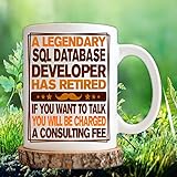 MONIZILUCKY A Legendary Sql Database Developer Has Retired Mug 11Oz, Retirement Gift Ceramic Coffee Mug For Sql Database Developer Mug For Coworker With Funny Quotes About Retirement