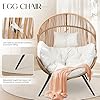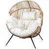 JAMFLY Egg Chair Wicker Outdoor Chairs, Oversized Patio Chair Oversized Lounger Chair with Cushion for Indoor Living Room, Bedroom, Outside Patio Backyard Balcony, Beige