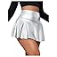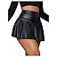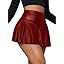 OYOANGLE Women's Pu Leather Elastic High Waist Skorts Ruffle Hem Casual Flared Skirt Shorts