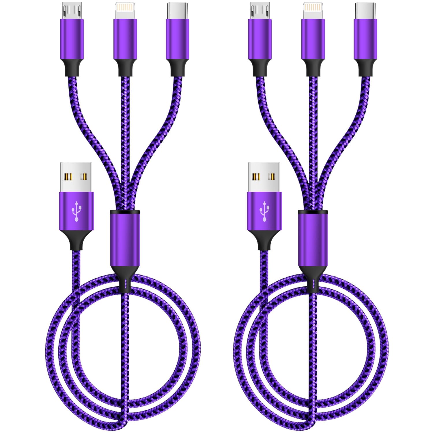 - Perfect Length: 2Pack 4ft multi usb cable enable you to charge your phone at ease. It's perfect for you to charge your phone when laying on sofa, bed or sitting in the backseat of the car and so on! Bring one multi charger cable, meets all your demand.