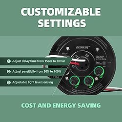 OCCUPANCY LIGHT SWITCH: Passive Infrared (PIR) occupancy detection, uses infrared signals to detect moving objects, to automatically turn ON/OFF lights; PIR motion sensor a bright LED indicator when the activated motion VERSATILE SETTINGS: Light sensor switch features adjustable settings. Adjustable time delay from 15sec-30min, Adjustable sensitivity from 20-100%, Adjustable light level sensing(can be set it only turn the light in the dark) 360° DETECTION RANGE: Installed at 10 ft (from 5-15 ft), sensor detector provides 360-degree detection with 20-ft detection range. Ideal for hallways, bathrooms, storage areas, closets, mud rooms, pantries and more MULTIPLE COMPATIBLE: Works with LED/CFL rated up to 300W, for Incandescent & Halogen light lamp bulbs rated up to 600W and 1/6HP Motor FRIENDLY SERVICE: Thanks purchase occupancy sensor with ECOELER. During used, if have any question of our Motion sensors please contact us, we will respond within 24 hours