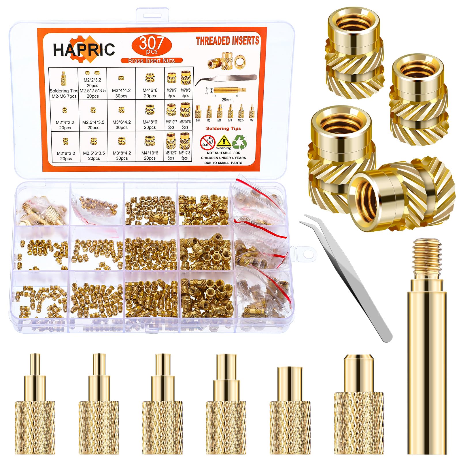- M2-M8 Brass Knurled Nut: Wide range brass knurled nut embedded insertion tip heads include M2,M2.5,M3,M4,M5,M6,M8 to meet your most installation needs