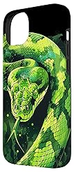 Snake Python Reptile design. Green Tree Snake Python art design curled up with tongue out. Snake and reptiles pets and nature lovers animals Green Tree Python. Two-part protective case made from a premium scratch-resistant polycarbonate shell and shock absorbent TPU liner protects against drops Printed in the USA Easy installation