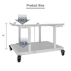 【Guaranteed Correct Wheel Size】 We ensure every customer receives wheels of the correct size. In the rare event that you receive inventory from previous batches with incorrect wheels, please feel free to contact us. We will promptly deliver the correct wheel accessories to you. 【Aesthetic Design】 This uniquely aesthetic printer table is with a patent-protected design. Each layer board is rounded corner to avoid being hurt. With solid metal frame structure and stylish elegant shape. The printer shelf can greatly enhance the taste of your home office space, make your working surrounding full of aesthetic and pleasure. 【Multifunctional Shelve】 With the top table size 24*20inch, this storage organizer shelf is perfect as home office printer stand to hold large laser printers, scanner, copier, 3d printer, and other wire machines. It can also be used in the bedroom, kitchen, and living room to place household items like crucit makers, mini fridge. 【Portable & Movable】The printer stand with storage adopts universal wheel design, which is light to push and pull, and can be easily moved to any place. Furthermore, we use industrial grade firm casters ,each of them is lockable to provide high stability when need to keep the printer cart in position. 【Sturdy & Durable】This heavy duty printer stand supports 170 lbs in total. the powder-coated steel tube frame size is 1’’x1’’, and there is a load bearing tube under the top shelve , the bottom layer also has one tube underneath. The solid construction,high quality particle board and industrial grade wheels make it quite a durable printer stand table that you can count on for years.